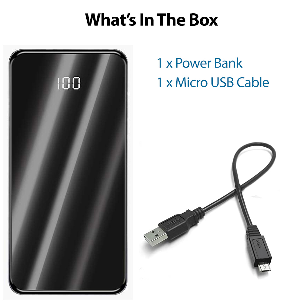 1 x Power Bank Battery Charger 1 x Micro USB Cable 1 x Type-C USB Cable UPC Code: 00860007687334